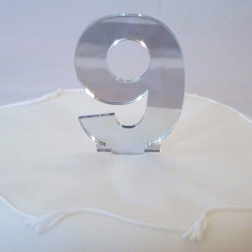 9 Silver Acrylic Mirror Cake Topper Number Contemporary 6cm (2.5inch) Number Height inc spike 10cm
