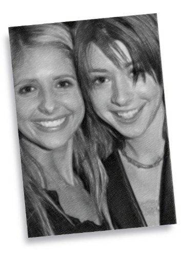 ALYSON HANNIGAN & SARAH MICHELLE GELLAR - ACEO Sketch Card (Signed by the Artist) #js002 .