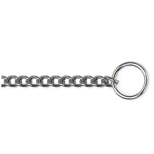 Fashioned from chrome steel, the collar features 2 rows of chain linked together and finished with a tongue made from Ancol bridle leather.